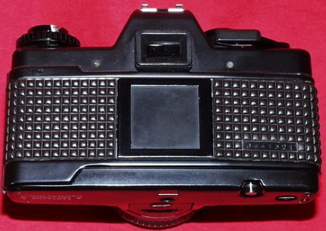 with field lens with triple rangefinder wedge, truncated microprism screen, groundglass field, LEDs- for shutter speed signalling changes their brightness with brightness of the image |